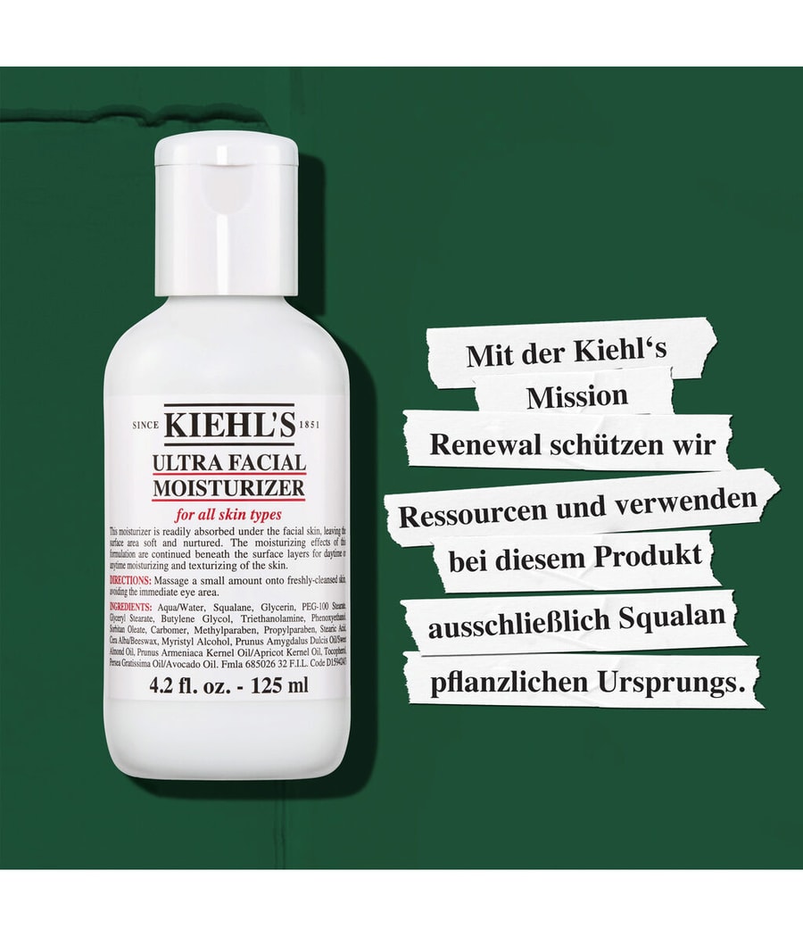 Ультра увлажняющий крем для лица от Kiehl's обеспечивает 24 часа интенсивного увлажнения для всех типов кожи и идеально подходит даже для чувствительной кожи. Легкая формула быстро впитывается, оставляя кожу приятно увлажненной и не отягощенной. Эффективно снимаются симптомы сухости и ощущения стянутости, кожа выглядит обновленной и бодрящей. Ценные сквалан и глицерин обеспечивают длительное увлажнение и эластичность кожи, быстро и интенсивно поддерживая естественный баланс влаги в коже. Тщательно подобранная комбинация других натуральных ингредиентов, включая масло абрикосовых косточек, масло авокадо и миндальное масло, обеспечивает оптимальный уход за кожей. Ультра увлажняющий крем для лица - идеальная основа для ежедневного ухода, придающая коже сияющий вид. Для достижения наилучших результатов его можно сочетать с другими продуктами из линейки Ultra Facial от Kiehl's.