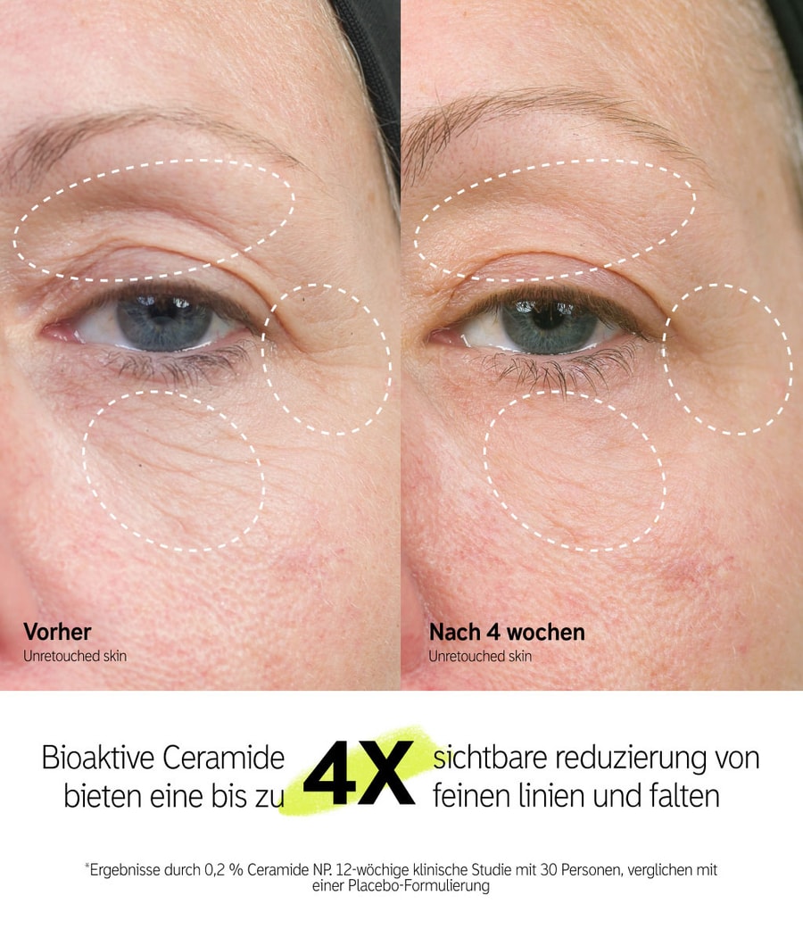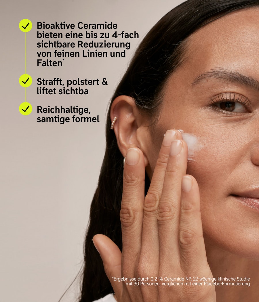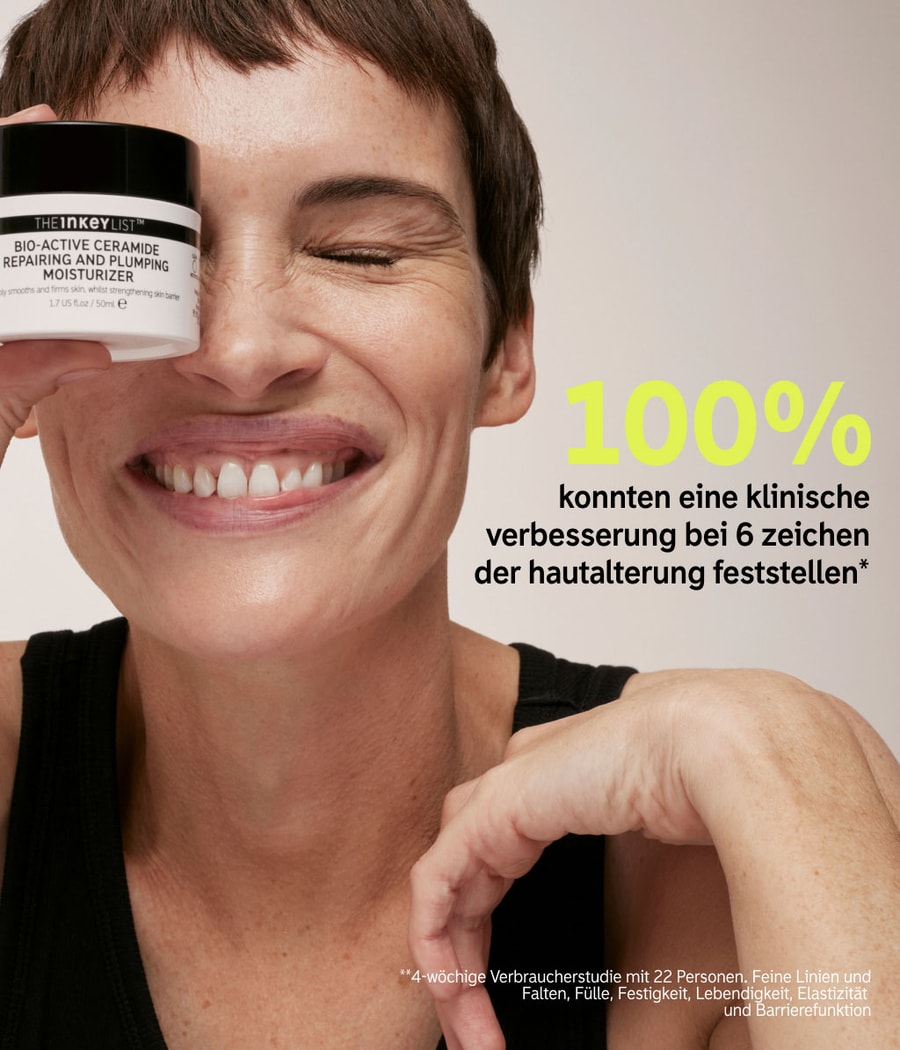 Представляем НОВЫЙ увлажняющий крем с биоактивными керамидами от The INKEY List — новую эру в технологиях ухода за кожей, которая борется с видимыми признаками старения. Благодаря биоактивным керамидам, которые обеспечивают до 4 раз видимое сокращение мелких и глубоких морщин*, этот насыщенный, бархатистый увлажняющий крем обеспечивает многоуровневую поддержку для укрепления кожного барьера, обеспечивает 24-часовое увлажнение и ускоряет видимое обновление кожи. Через 28 дней у 100% участников наблюдалось клиническое улучшение по 6 признакам старения кожи: морщины, тонкие линии, полнота, упругость, стянутость, эластичность и барьерная функция. По сравнению с обычными керамидами биоактивные керамиды нового поколения не только восстанавливают кожный барьер, но и восстанавливают, укрепляют и защищают кожу. Активный ингредиент, обладающий новой короткоцепочечной структурой, обеспечивает более глубокое проникновение в кожу и оказывает двойное действие, воздействуя как на внешние, так и на более глубокие слои поверхности кожи. Добавление Gransil Blur помогает мгновенно размыть мелкие морщинки и обеспечивает мягкий, целенаправленный эффект на коже. В то же время масло ши интенсивно питает кожу и уменьшает потерю воды, защищая ее водный барьер. Подходит для использования в качестве части утреннего и вечернего ухода.