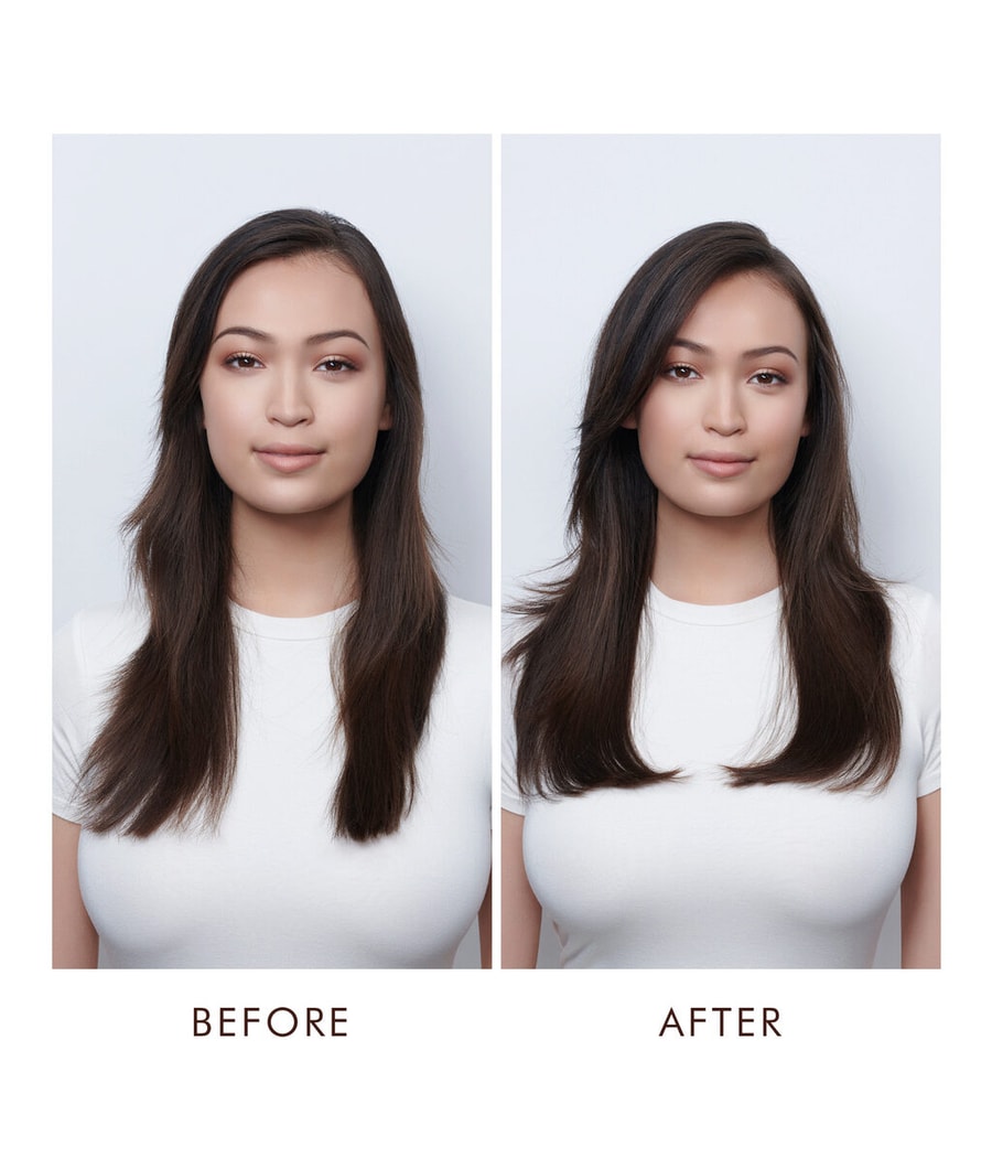 Нанесите между ладонями лосьон для загущения Moroccanoil в количестве четверти. Распределите по влажным волосам от корней до кончиков и высушите феном, как обычно.
