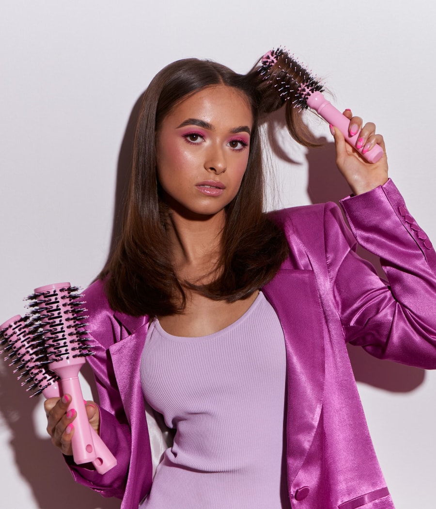 Шаг 2. Возьмите круглую кисточку миди и намотайте небольшую ровную прядь на волосы.