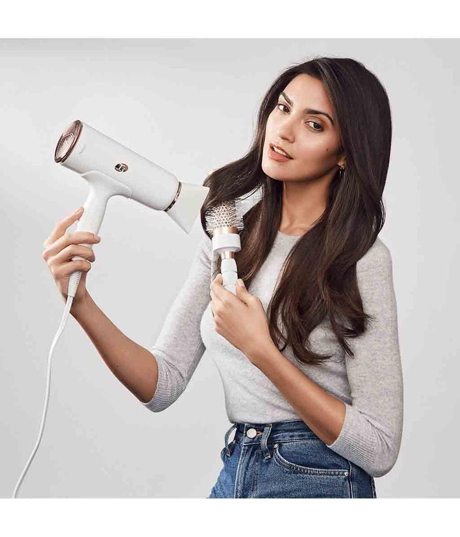 Грубо высушите волосы феном, пока они не высохнут на 80%. Используйте круглую щетку T3 Volume вместе с феном T3 по вашему выбору. Расположите круглую щетку под прядью у корней волос и потяните вниз, направляя поток воздуха на щетку. Как только кончики будут достигнуты, откиньте волосы назад на макушку и удерживайте. Распустите волосы и переходите к следующей пряди. Продолжайте в том же духе со всеми прядями, чтобы получить идеальную прическу феном.