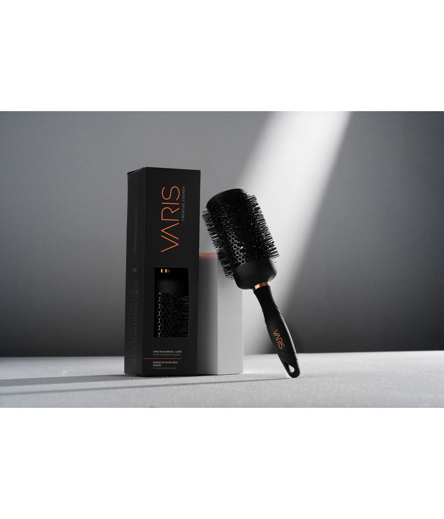 Нейлоновая круглая щетка VARIS Brush L - идеальный выбор для профессионального исполнения благодаря своей легкой конструкции и гидроиновым кристаллам, встроенным в головку и щетину щетки.
