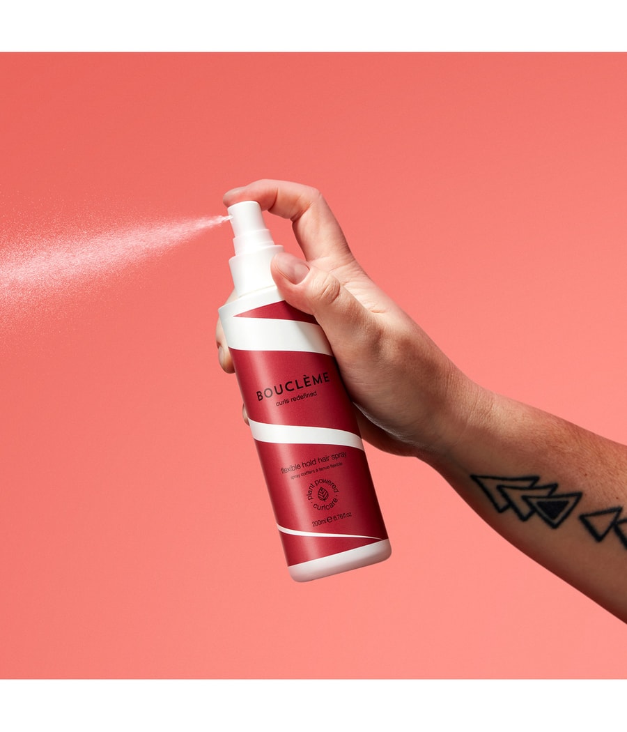 Новый гибкий спрей для волос Hold обладает свежим ароматом, как и все продукты Boucleme. Благодаря своим натуральным ингредиентам он питает локоны и в то же время придает им превосходную фиксацию, не склеивая при этом волосы.