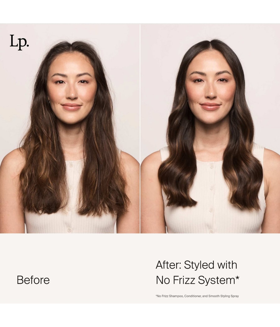 * При использовании системы No Frizz (шампунь без завивки, кондиционер + стайлер) по сравнению с необработанными волосами.