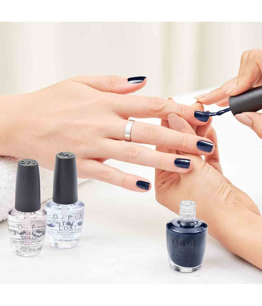Шаг 1: Нанесите натуральное базовое покрытие для ногтей OPI. Улучшает адгезию и предотвращает обесцвечивание.