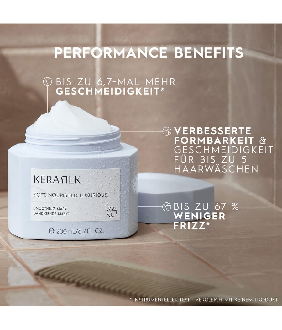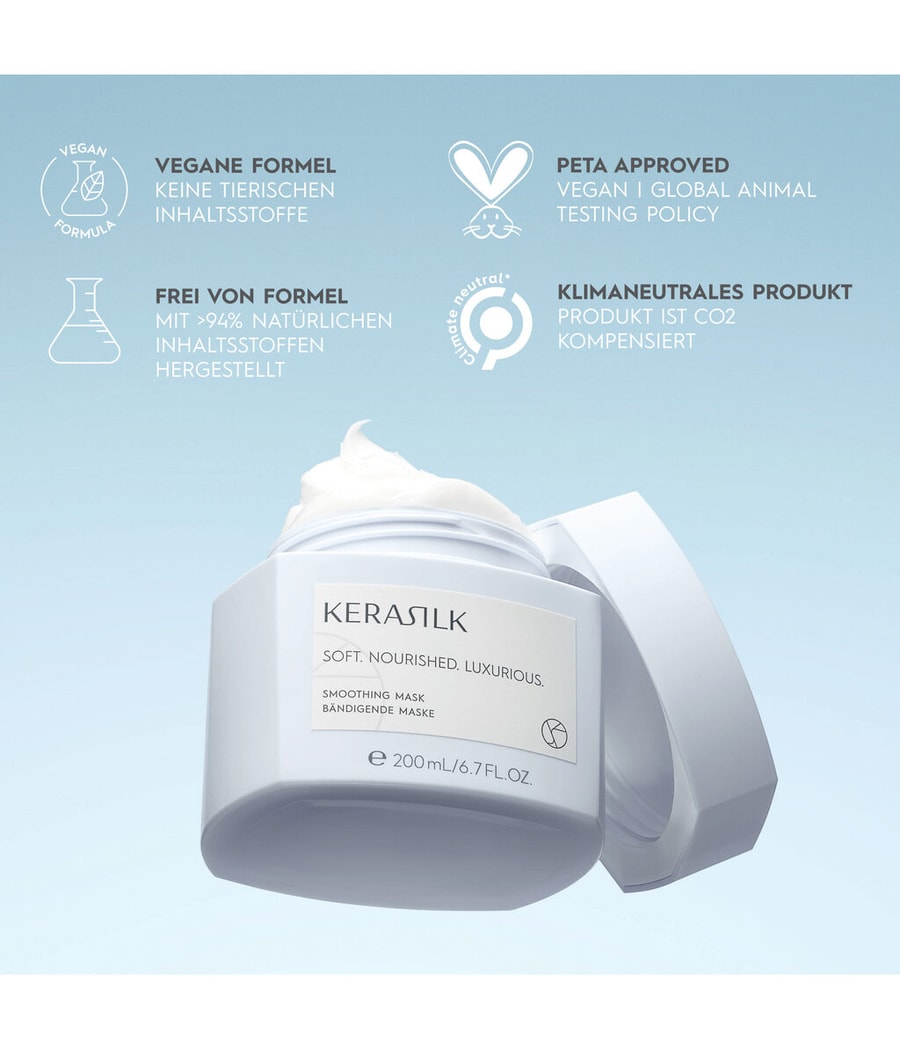 Маска для интенсивного глубокого кондиционирования, с биомиметическим шелком и маслом ши. Наша 100% веганская формула интенсивно питает, приручает и питает даже самые ломкие волосы, обеспечивая исключительный контроль вьющихся волос, великолепный блеск, стойкий контроль и до 6,7 раз более эластичные волосы.