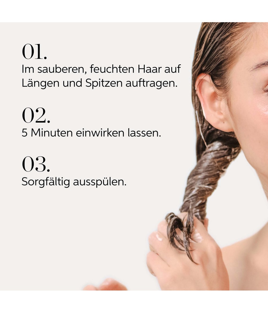 Нанесите на очищенные влажные волосы. Тщательно промойте после 5 минут выдержки.