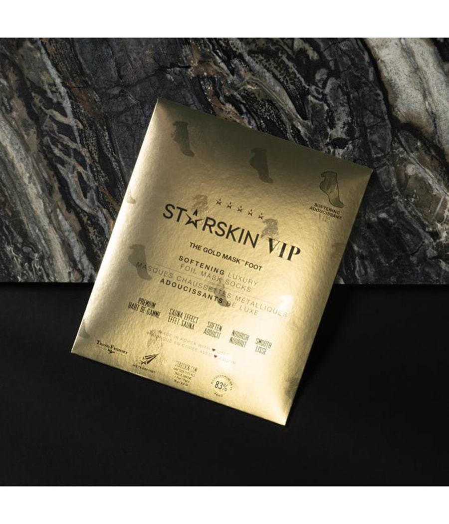 Побалуйте свои ноги роскошными процедурами – с помощью The Gold Mask Foot от Starskin. Носки из фольги состоят из двух слоев: внутренний слой основан на сыворотке, пропитанной экстрактами болгарской масляной розы и обогащенной маслом ши и маслом шиповника, а внешний защитный слой оказывает согревающее действие, обеспечивая глубокое проникновение активных ингредиентов в кожу. В результате получаются шелковисто-мягкие ступни, которые выглядят ухоженными и очень нежными на ощупь.