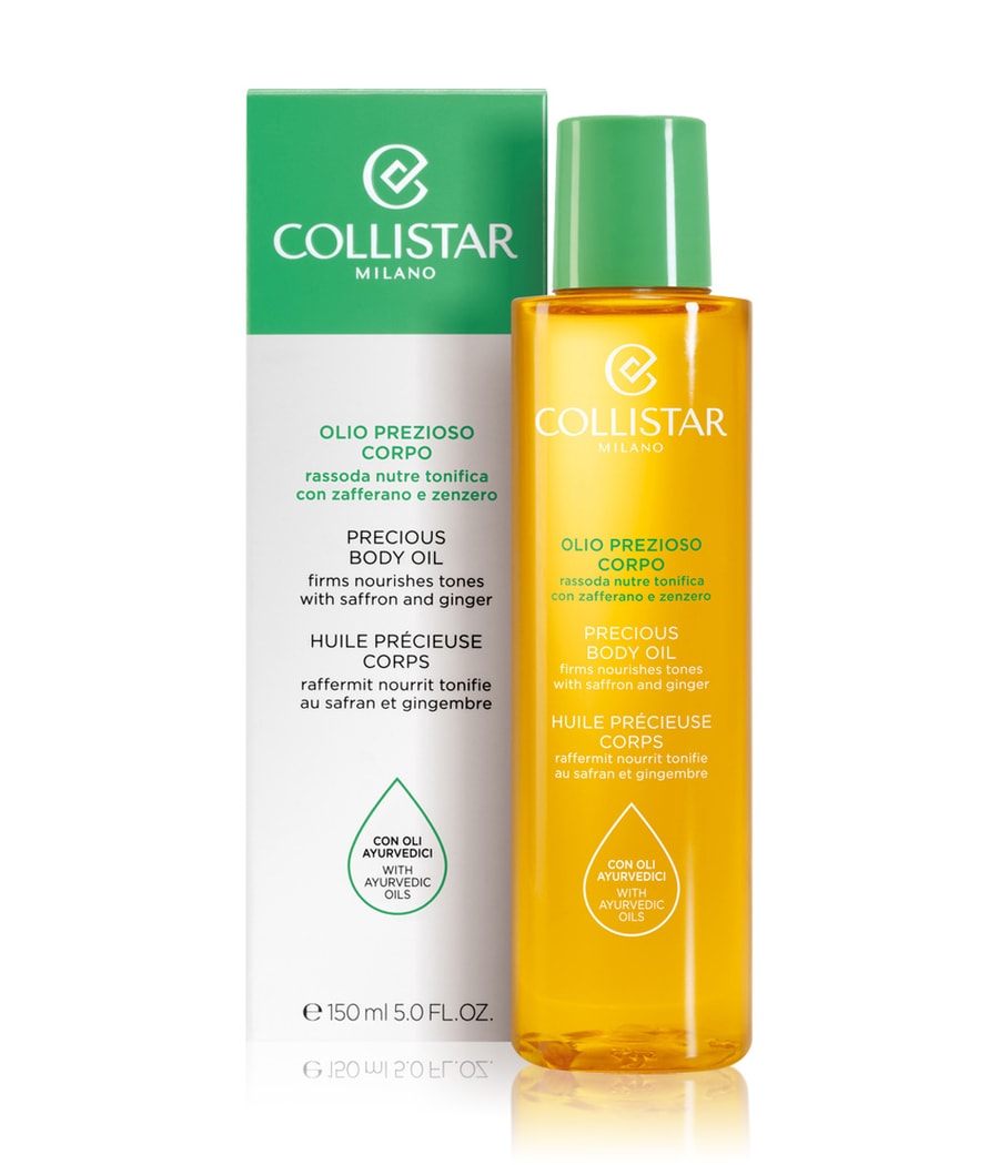ДРАГОЦЕННОЕ МАСЛО ДЛЯ ТЕЛА COLLISTAR - это богатое и драгоценное масло, которое укрепляет, питает и тонизирует тело благодаря маслам, вдохновленным аюрведическими традициями (кунжутное масло, масло нима и масло дамасской розы). Шафран усиливает расслабляющее действие продукта, имбирь стимулирует микроциркуляцию. Активный ингредиент, извлеченный из ванили, создает приятное ощущение тепла.