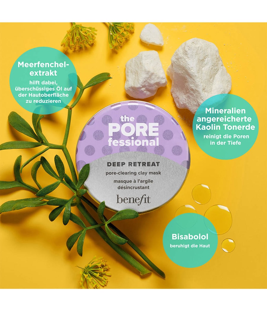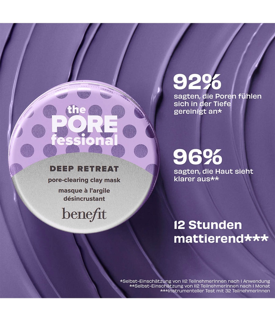 Глиняная маска POREfessional Deep Retreat от Benefit Cosmetics заметно очищает поры и делает вашу кожу более чистой, гладкой и ровной. Откройте глаза! Маленькие точки появляются там, где маска вытягивает излишки жира из пор. После смывания маски ваша кожа станет заметно более чистой, матовой и здоровой, а поры станут чище. Лучшее из всего: Ваша кожа чувствует себя великолепно после глубокого очищения, а также во время использования.