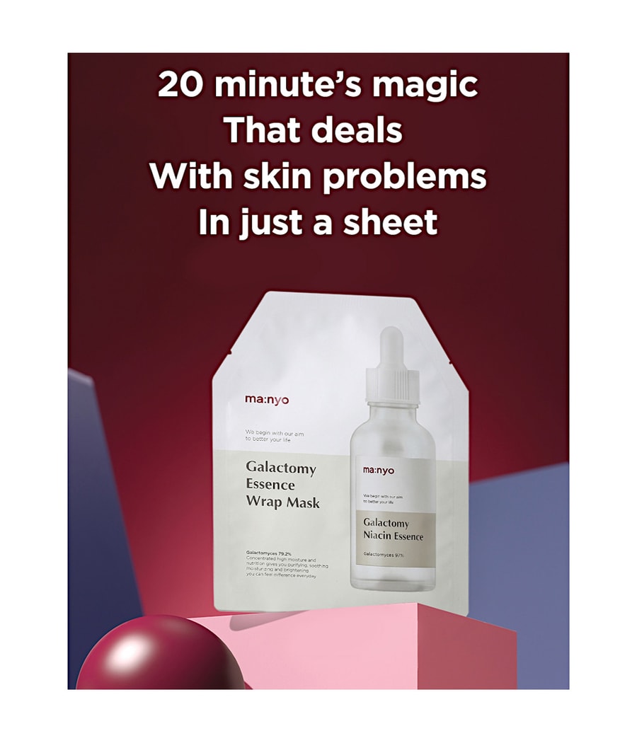 Мы все знаем эту ситуацию. Приближается важное событие, на котором вы хотите продемонстрировать себя с лучшей стороны, но что бы вы ни делали, ваша кожа просто не желает подчиняться. Периоды «высыпаний» — это абсолютно нормально, иметь идеальную кожу 24 часа в сутки, 7 дней в неделю — это слишком хорошо, чтобы быть правдой. Но маска-обертывание Galactomy Essence Wrap Mask от Ma:nyo была разработана именно для таких моментов. Ее цель — уменьшить недостатки кожи, сузить поры и выровнять цвет лица, чтобы помочь коже раскрыться наилучшим образом. Высококонцентрированные ингредиенты помогают вернуть коже сияние: