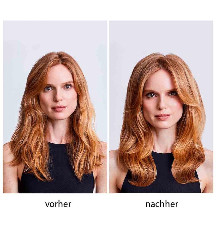 Объемная пена перед нанесением тщательно взбейте. Обильно нанесите на волосы, высушенные полотенцем, и нанесите на волосы. Придает объем линии роста волос при сушке феном. Для большего объема приподнимите волосы во время сушки феном или высушите их феном над головой.
