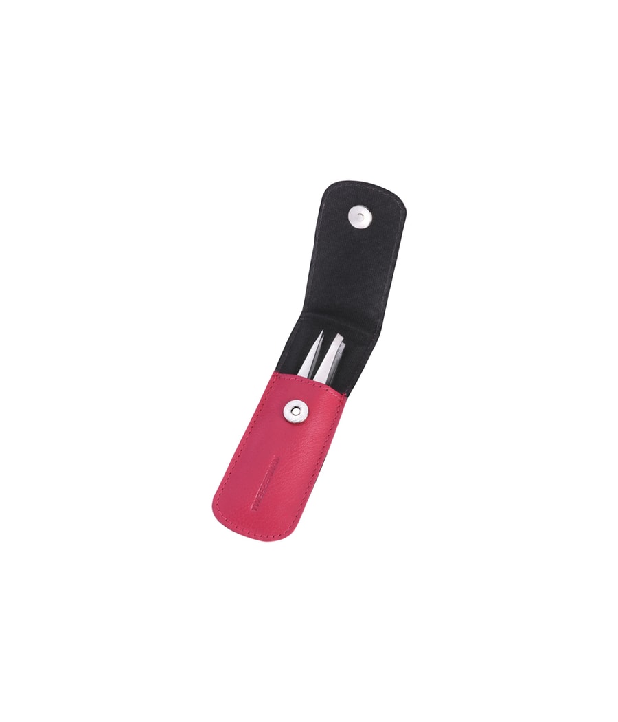 Этот практичный набор включает в себя знаменитый наклонный пинцет и пинцет с заостренным острием небольшого размера. Пинцеты изготовлены из нержавеющей стали с идеально сходящимися кончиками, подпиленными вручную. Дуэт защищен красивым кожаным футляром розового, фиолетового или черного цветов, поэтому он идеально подходит для ручной клади или дорожной сумки.