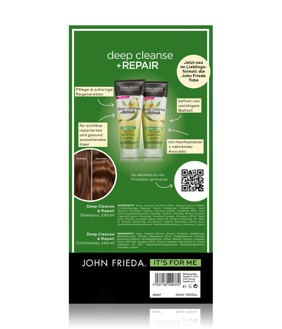 [ В КОМПЛЕКТЕ / ТИП ВОЛОС ]: шампунь для глубокого очищения и восстановления John Frieda + кондиционер по 250 мл каждый - Тип волос: поврежденные, поврежденные