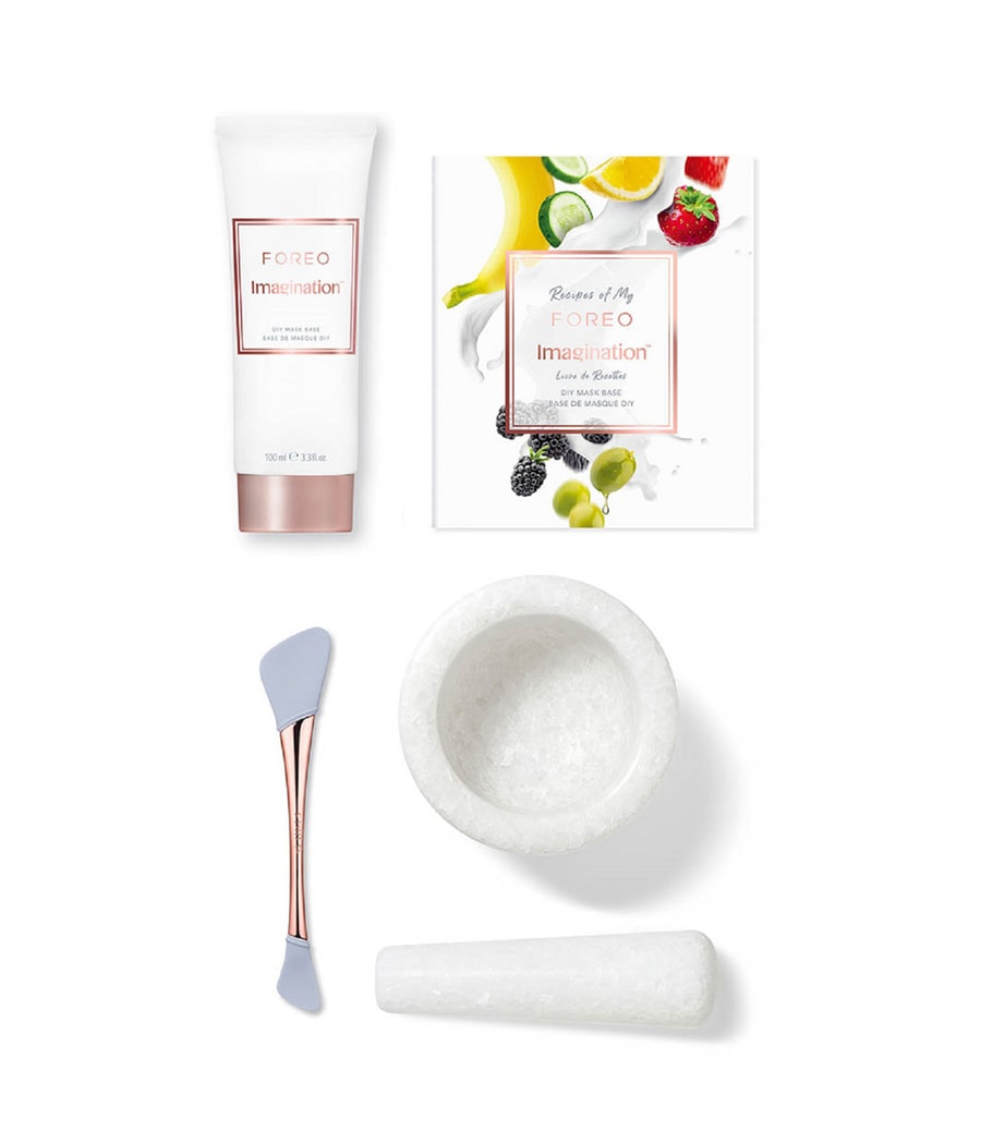 Смешайте натуральные ингредиенты с одной чайной ложкой FOREO Imagination (прибл. 5 мл рецептуры).** Если текстура слишком жидкая, просто добавьте еще одну чайную ложку Imagination .