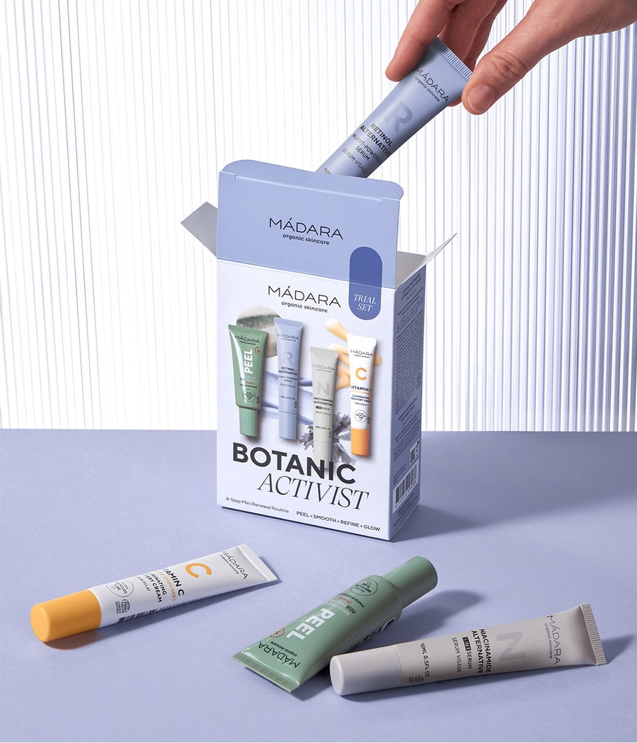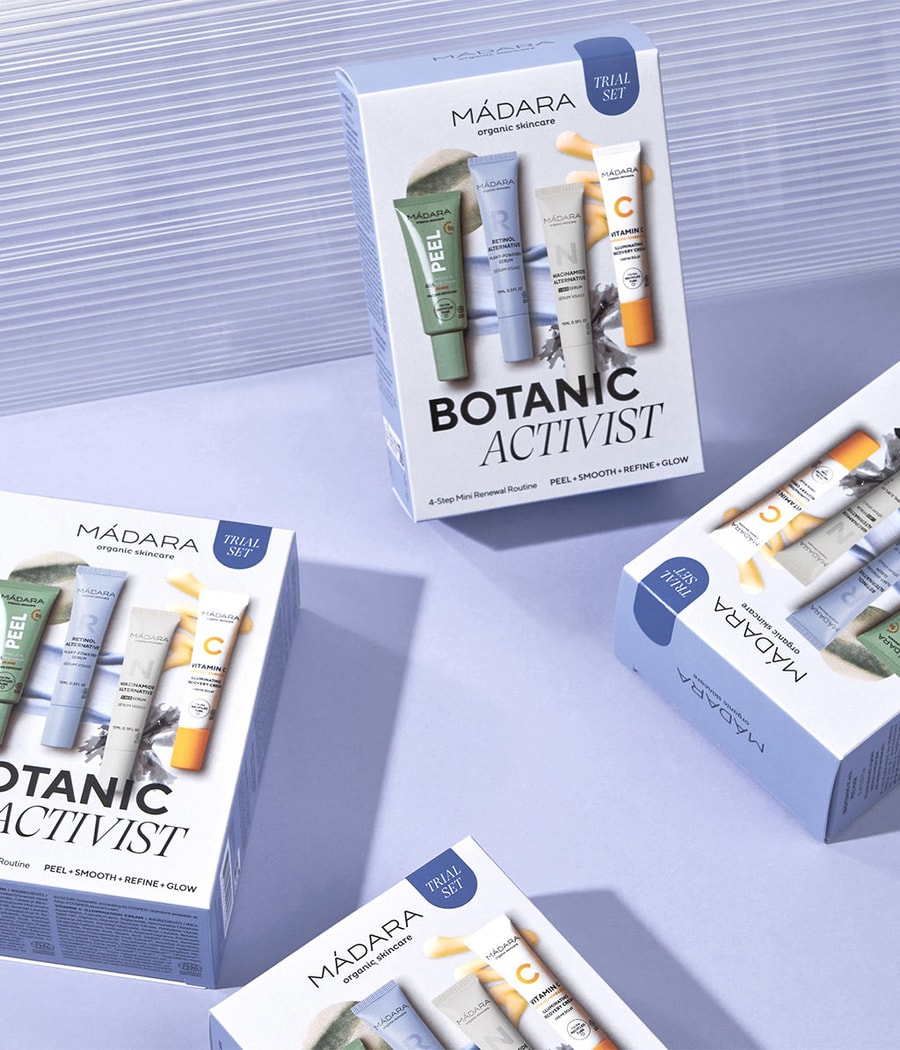 Набор Botanic Activist состоит из четырех инновационных мини-формул MÁDARA, которые помогают минимизировать проявления неровной текстуры и тона кожи, а также противодействуют потере эластичности и тусклости кожи. Это эффективно, но не жестоко.