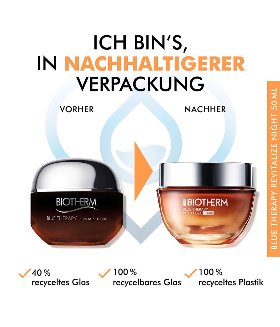Дайте своей коже интенсивное восстановление, необходимое ей ночью, — с Biotherm Blue Therapy Revitalize Night. Этот насыщенный ночной крем нежно впитывается в кожу и интенсивно снабжает ее ценными питательными веществами, которые сохраняют ее эластичность и способствуют естественной регенерации. Высокоэффективная формула с восстанавливающими бурыми водорослями, укрепляющим кальцием и восстанавливающим жизненный планктоном активизирует молодость вашей кожи и эффективно борется с признаками ее старения. Он укрепляет, восстанавливает и разглаживает кожу, а содержащийся в нем антиоксидант ресвератрол дополнительно защищает ее от вредного воздействия свободных радикалов и, таким образом, предотвращает образование морщин и складок. Просыпайтесь каждое утро с заметно более гладкой, упругой и обновленной кожей лица, имеющей сияющий и красивый вид. Наносите легкими движениями на лицо и шею вечером после очищения.