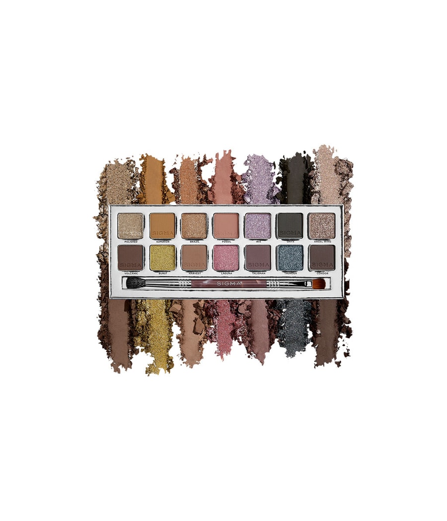 Используйте двухконечную косметическую кисть, входящую в комплект поставки палитры теней для век, или свою любимую кисточку для глаз Sigma Beauty, чтобы нанести тени на веки по вашему выбору и растушевать их.