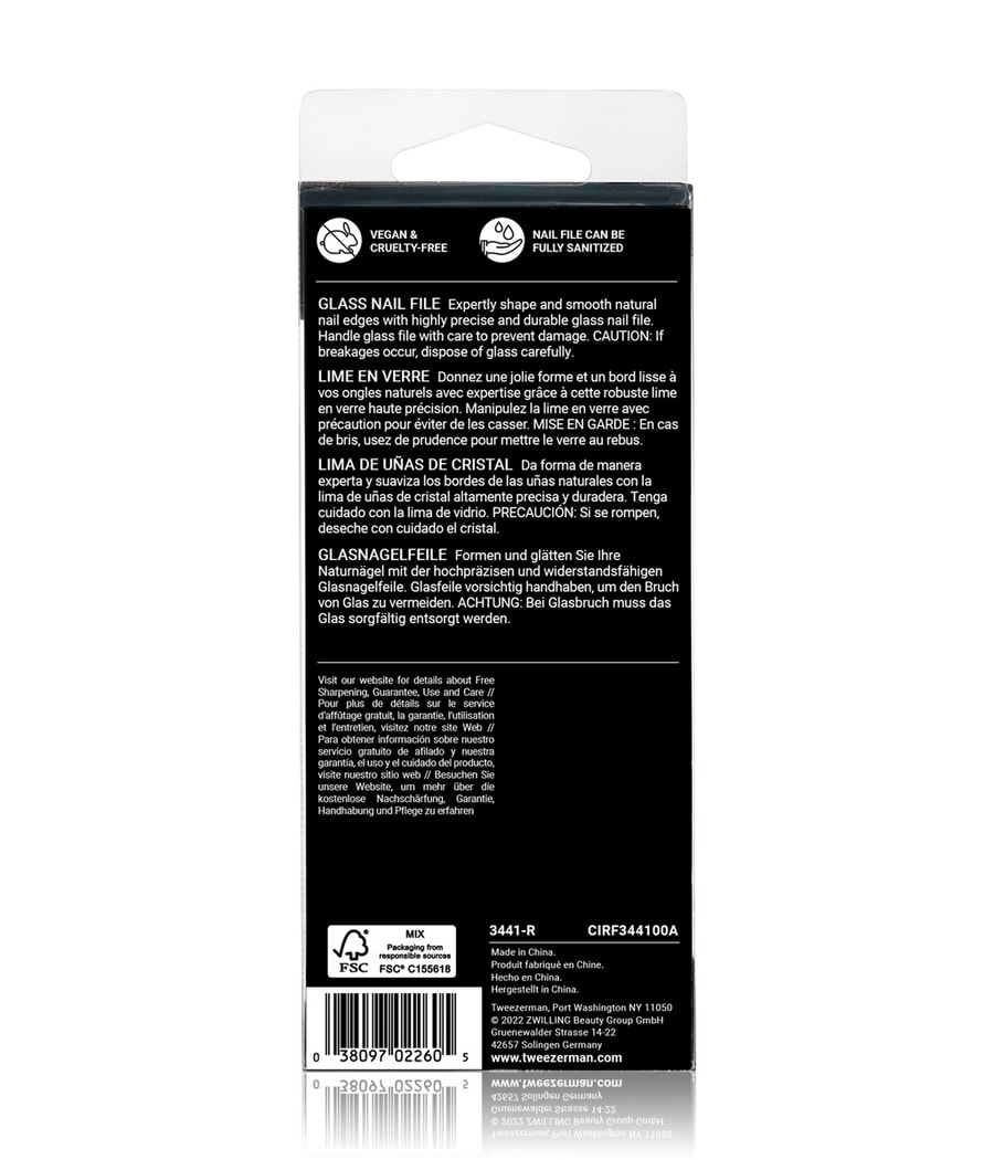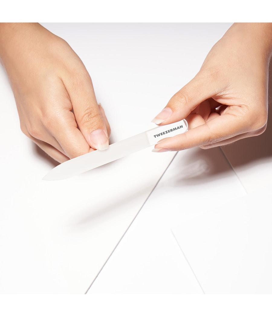 Остерегайтесь, вот что меняет правила игры среди инструментов по уходу за ногтями для создания шелковисто-гладких ногтей! Стеклянная пилочка для ногтей TWEEZERMAN аккуратно формирует и разглаживает края ногтей, а также отличается пуристическим дизайном. Таким образом предотвращается появление шероховатых ногтей, которые могут отслоиться или расколоться.