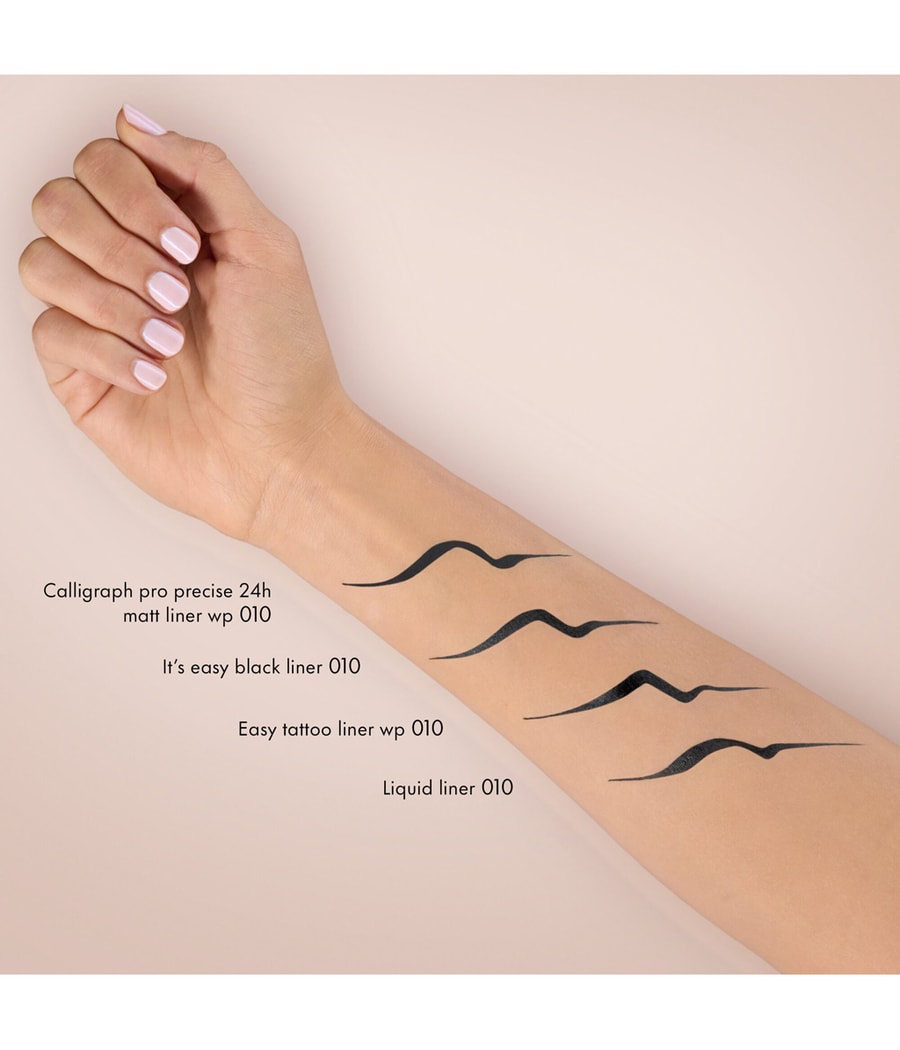 97 процентов согласны *: насыщенный черный цвет, сильное непрозрачное покрытие и точное нанесение. Этот водонепроницаемый вкладыш - универсал. точные линии? Нет проблем благодаря ультратонкому наконечнику. Ручка буквально скользит по крышке, обводка идеально прилегает – и так до 24 часов. Чрезвычайно интенсивная цветопередача по-прежнему видна даже через тени для век и макияж. *Исследование с участием 30 женщин сразу после применения