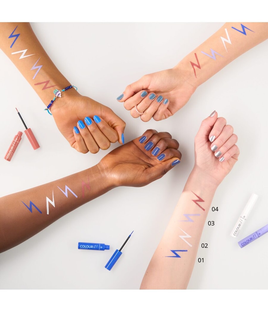 С essence COLOUR it! жидкой подводкой для глаз достаточно одного нажатия, чтобы создать идеальный мазок для век. Его насыщенная цветовая текстура обеспечивает великолепную отделку с высокой непрозрачностью. Очень точный кончик кисти обеспечивает очень легкое нанесение. Благодаря этому наконечнику вы получите четкие линии всего одним росчерком. Так вы легко получите идеальный и продолжительный результат.