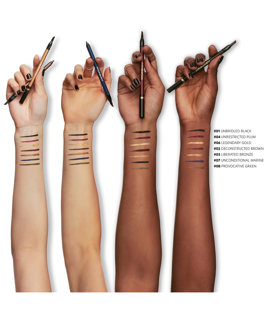 Формула стойкой подводки для глаз содержит интенсивные пигменты ярких цветов, которые наносятся всего одним мазком. Помимо ультрапигментированной текстуры, карандаш для подводки глаз также отличается эластичной, нежной текстурой, а также матовым, полуглянцевым или глянцевым покрытием.