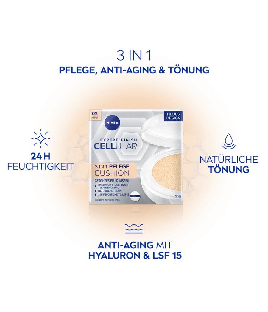Подушка-основа NIVEA Cellular Expert Finish 3in1 Pflege Cushion, Mittel, 15 ml