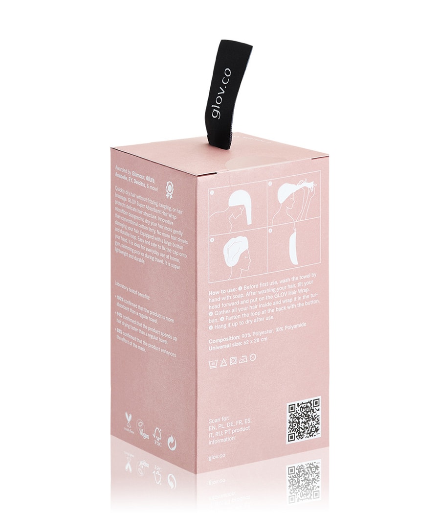 Тюрбан - настоящий секретный агент в мире красоты. Он помогает сушить волосы феном, когда вы спешите, и позволяет вам наслаждаться ритуалами ополаскивания и смазывания волос, когда у вас есть время. Он всегда служит своей королеве. Так же, как и 007. GLOV Hair Wrap - это тюрбан, который сокращает время высыхания до 50%! Полотенце для волос не испортит и не спутает ваши волосы. Он адаптируется к любому размеру головы и типу волос.