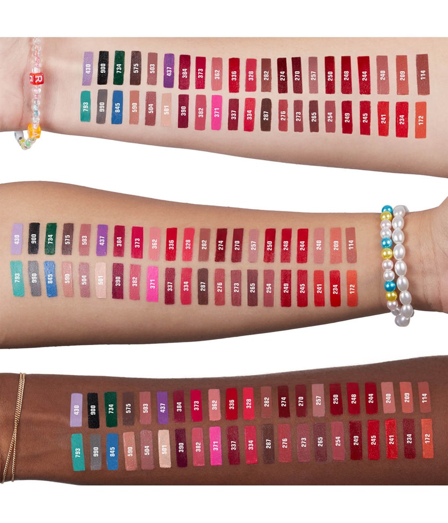 Помада доступна в 40 цветах с высокой пигментацией, в том числе в некоторых наших культовых тонах, таких как идеальный телесно-розовый 503, а также в некоторых смелых оттенках, таких как легендарная 900, наша знаменитая черная помада. И есть еще из чего выбирать. Эта помада - (действительно) все, что вам нужно!