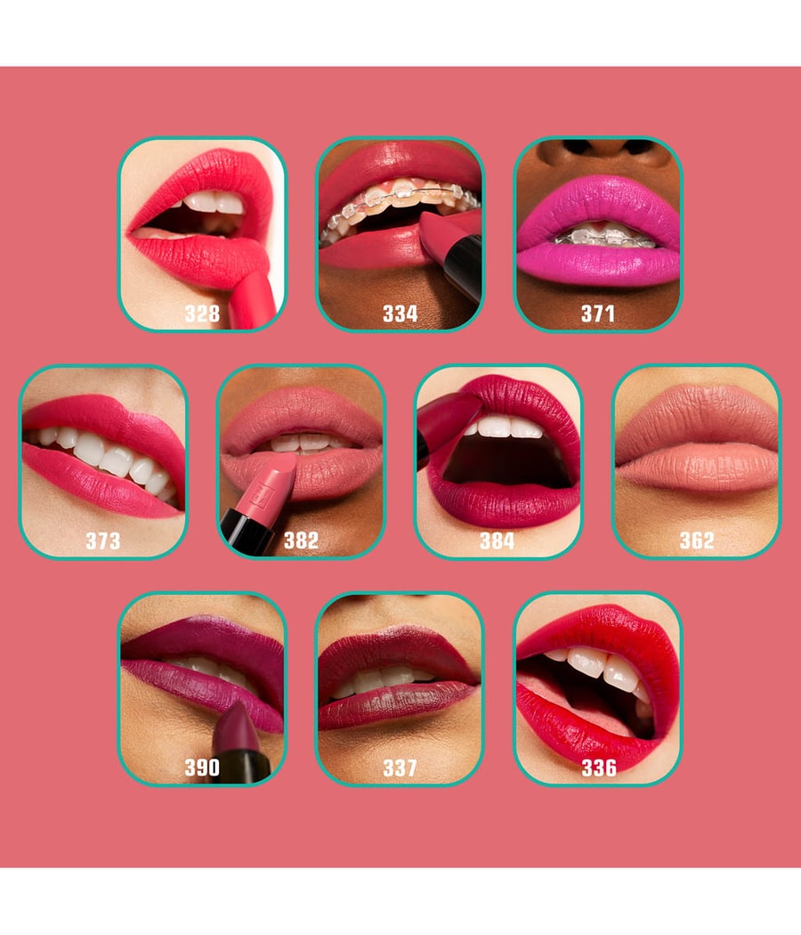 Помада доступна в 40 цветах с высокой пигментацией, в том числе в некоторых наших культовых тонах, таких как идеальный телесно-розовый 503, а также в некоторых смелых оттенках, таких как легендарная 900, наша знаменитая черная помада. И есть еще из чего выбирать. Эта помада - (действительно) все, что вам нужно!