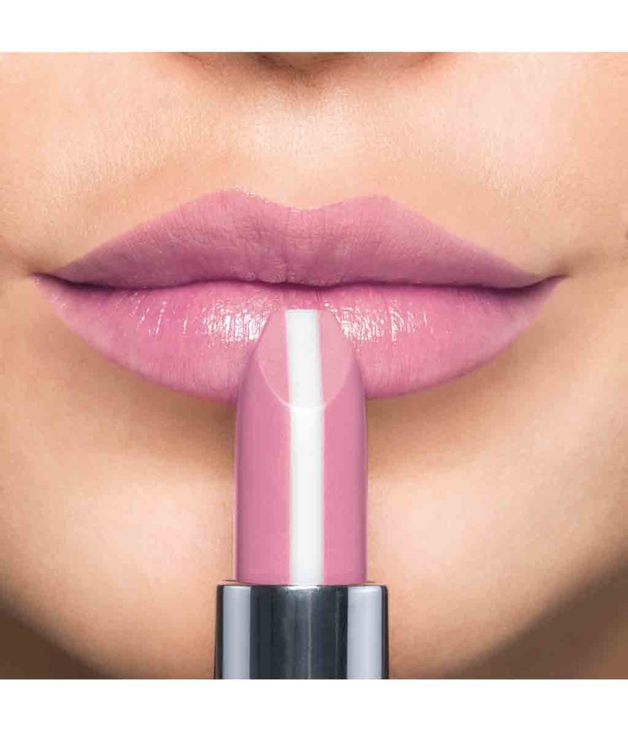 Нанесите помаду на губы. Прозрачная полоса в центре будет сливаться с внешними цветными полосами при нанесении, создавая однородный цветовой результат.