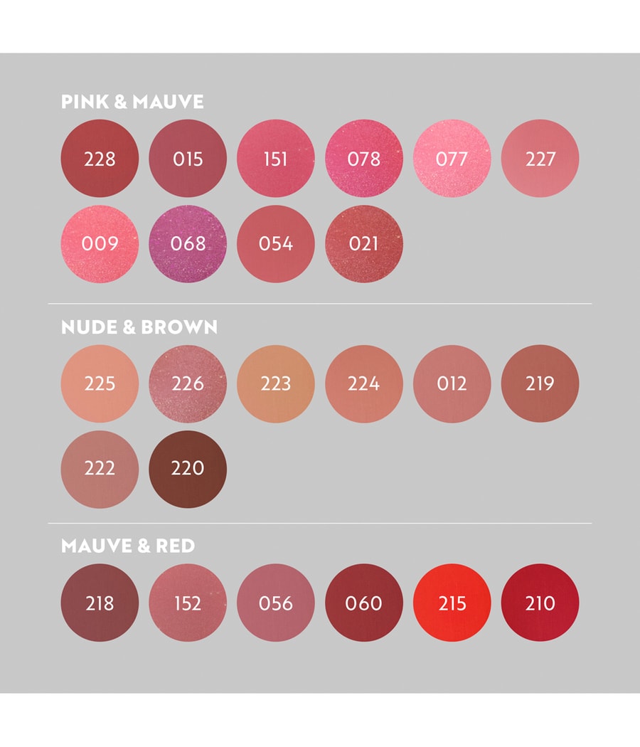 Палитра из 24 полезных оттенков включает цвета для губ с кремовой и мерцающей консистенцией, которые приятно увлажняют губы. Даже однократное нанесение придаст губам стильный вид, а также безупречный увлажняющий цвет.