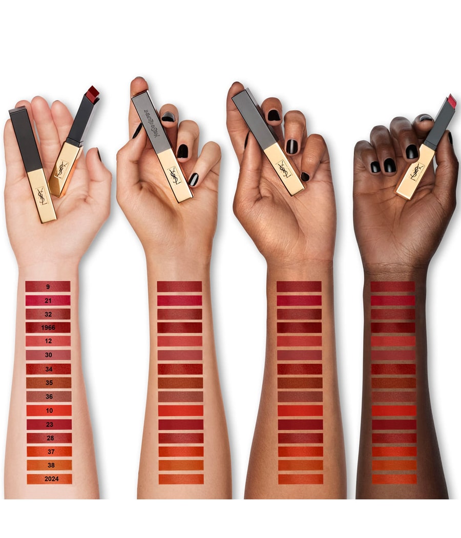 Ив Сен-Лоран Бьюти заново изобретает помаду с помощью ROUGE PUR COUTURE THE SLIM. Матовый цвет губ проявляется в ультратонкой квадратной форме, что позволяет легко и точно наносить кремообразную, высокопигментированную формулу. Помада ROUGE PUR COUTURE обладает высокой консистенцией и придает губам насыщенный цвет, который не растекается. Сверхлегкая текстура придает губам ощущение эластичности благодаря изысканной отделке от кутюр из драгоценной матовой кожи. Губная помада YSL Beauty сочетает в себе классику, моду и повседневный стиль, создавая совершенно новый образ красоты. Откройте для себя различные оттенки матовой помады, которые придадут вашему образу от кутюр чувственно матовые губы.