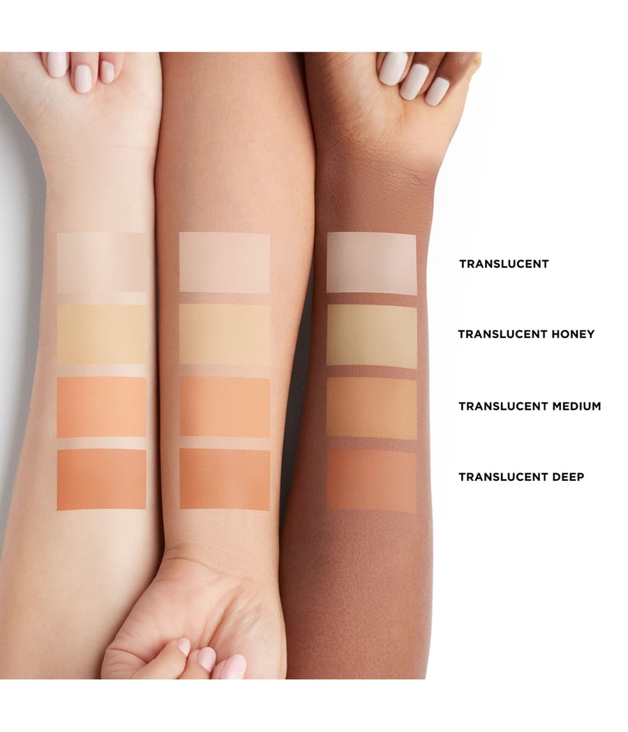 Нанесите пудру с помощью светящейся кисти и нанесите ее на контуры лица, используя S-образный изгиб кисти, чтобы добиться гладкого и равномерного нанесения. Нанесите настоящую безупречную пудру в качестве заключительного этапа нанесения макияжа и нанесите спрей Translucent Pure Setting на 16 часов перед нанесением.