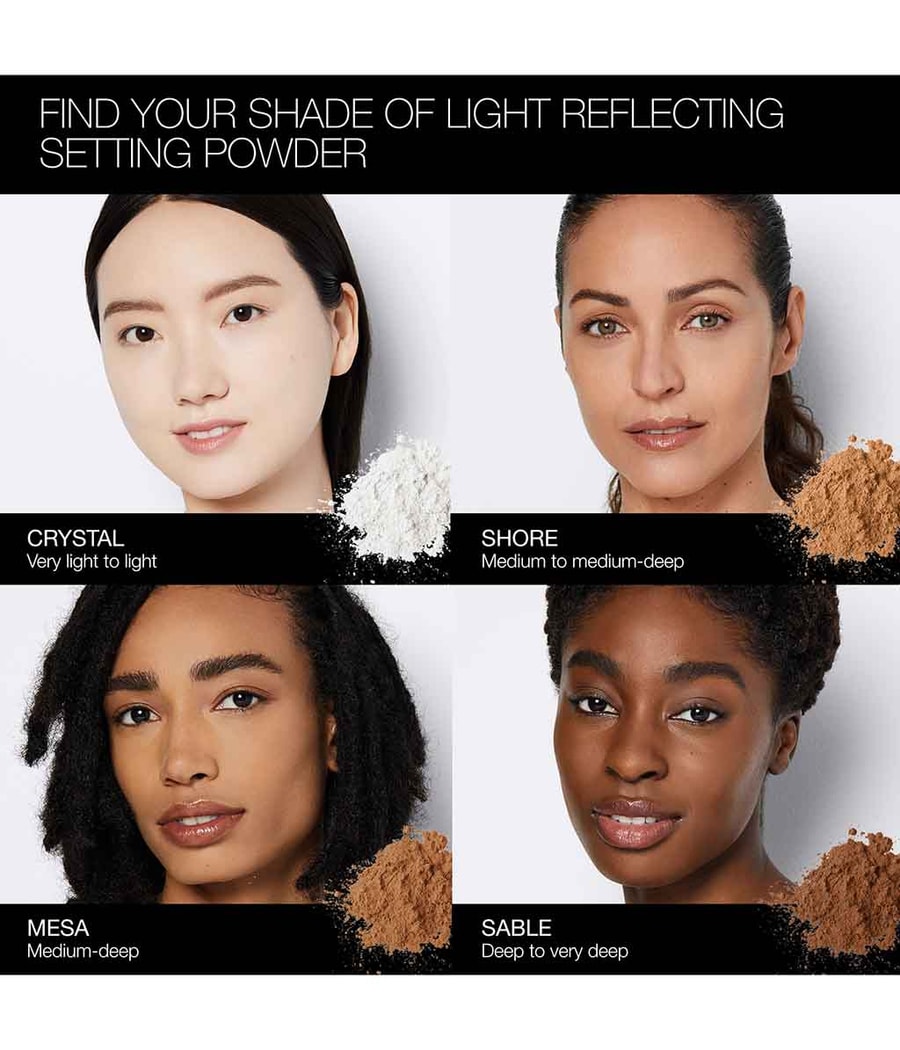 Используя СВЕТООТРАЖАЮЩУЮ ПУДРУ, компания NARS создала уникальную рассыпчатую пудру, которая просто подойдет любой коже. Универсальная формула впечатляет своей перистой текстурой, которую легко наносить и растушевывать. Благодаря инновационной технологии Photochromic она придает вашей коже невесомое сияющее сияние в течение всего дня. Уникальная технология рассеивает свет и постоянно адаптируется к источникам света, благодаря чему кожа выглядит идеально как на природе, так и перед камерой. Обогащенная микроэлементами с глицерином и антиоксидантным витамином Е, кожа оптимально увлажняется и становится приятной на ощупь.