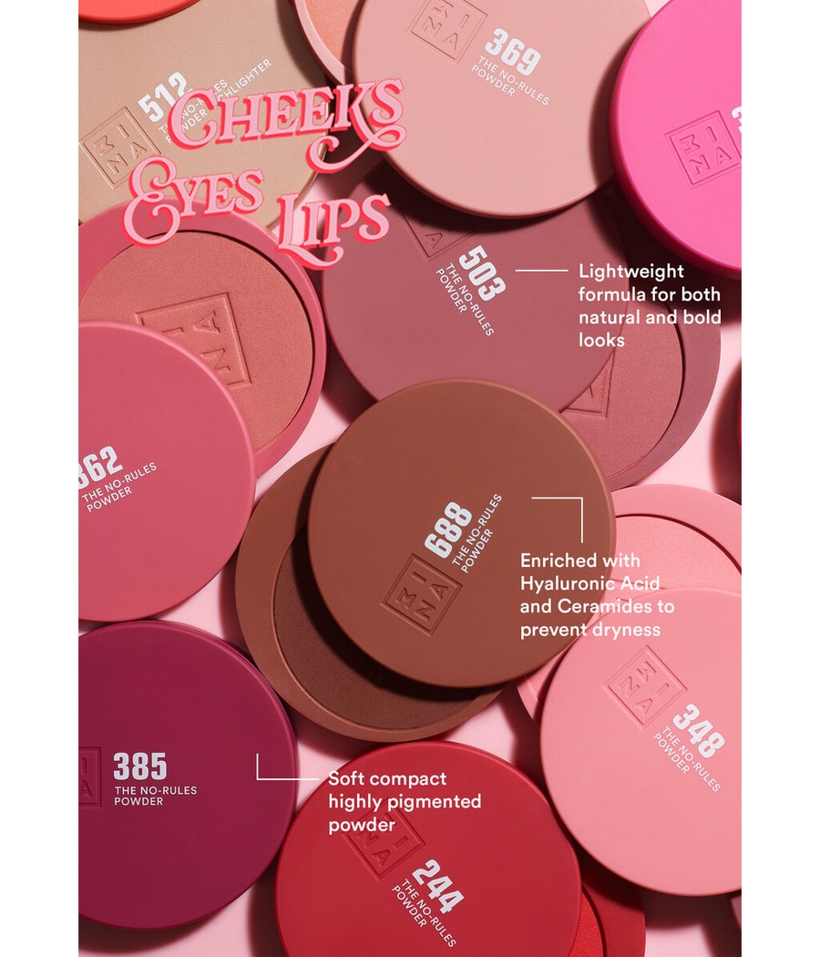 Ваши румяна, тени для век и средства для макияжа губ - все в одном. Порошок без правил - это мягкая компактная пудра 3 в 1, которая придает цвет глазам, губам и щекам. Его легкая, эластичная формула обладает способностью к наращиванию, поэтому вы можете добиться всего, от естественного сияния до более насыщенного послевкусия. Формула без талька мягко впитывается в кожу и идеально подходит для любого стиля макияжа! Обогащенный гиалуроновой кислотой и керамидами, он помогает предотвратить сухость и обеспечивает коже комфортное ощущение. Он безопасен для глаз, что делает его подходящим для чувствительных глаз.