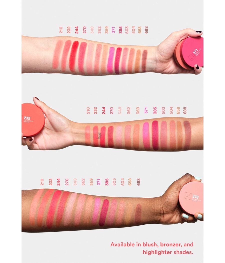 Ваши румяна, тени для век и средства для макияжа губ - все в одном. Порошок без правил - это мягкая компактная пудра 3 в 1, которая придает цвет глазам, губам и щекам. Его легкая, эластичная формула обладает способностью к наращиванию, поэтому вы можете добиться всего, от естественного сияния до более насыщенного послевкусия. Формула без талька мягко впитывается в кожу и идеально подходит для любого стиля макияжа! Обогащенный гиалуроновой кислотой и керамидами, он помогает предотвратить сухость и обеспечивает коже комфортное ощущение. Он безопасен для глаз, что делает его подходящим для чувствительных глаз.