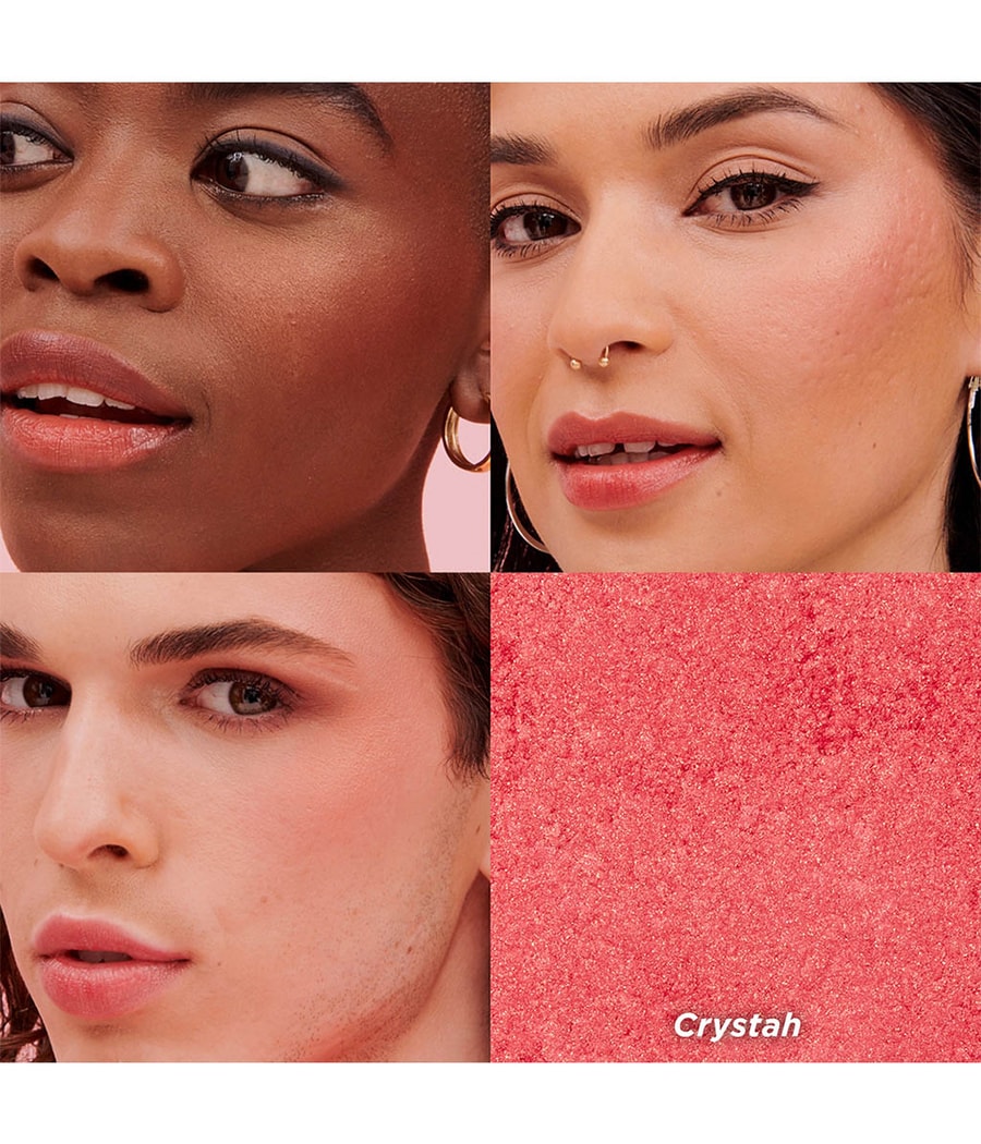 Окуните кисть в румяна Crystah клубнично-розового цвета и нанесите на щеки. Растушуйте по желанию на не накрашенном лице или поверх макияжа.