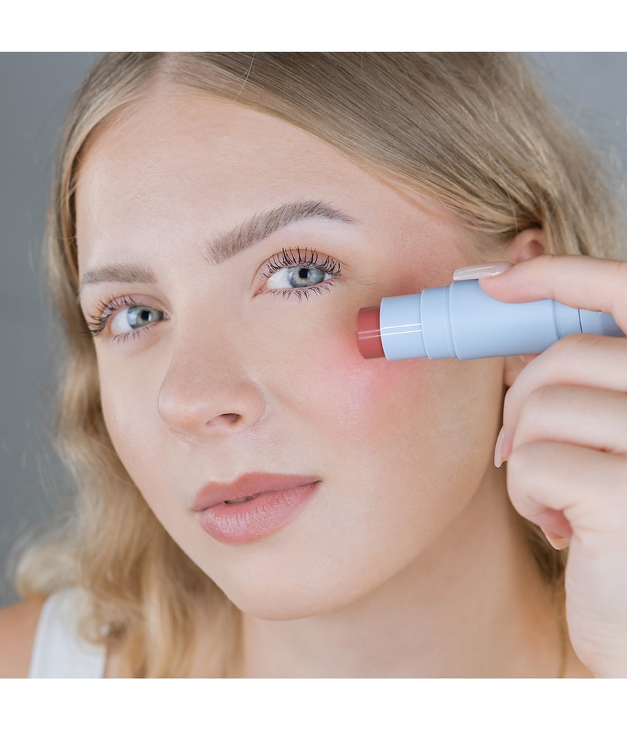 Нанесите румяна на щеки, веки и губы с желаемой интенсивностью и растушуйте их пальцами или встроенной кисточкой.
