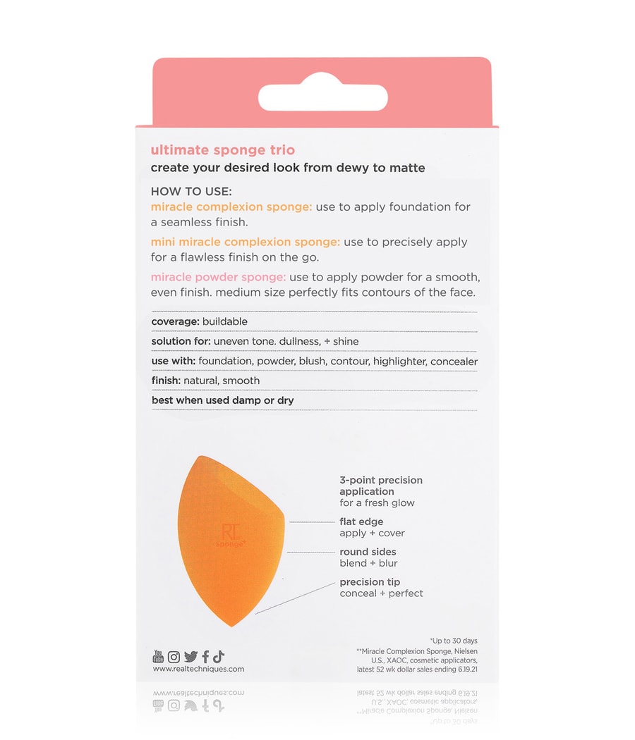 The Real Techniques Ultimate Sponge Trio - это универсальный набор губок разных размеров и текстур, которые дополнят любой образ. Создайте любой образ, от светящегося до матового, который вам нравится!