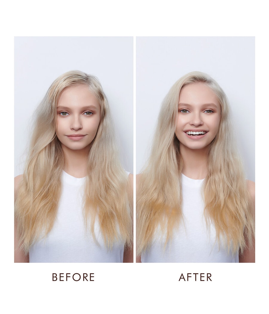 Сухой шампунь, который мгновенно растворяется, впитывая масло и остатки продукта, а также устраняет латунный блеск светлых волос.