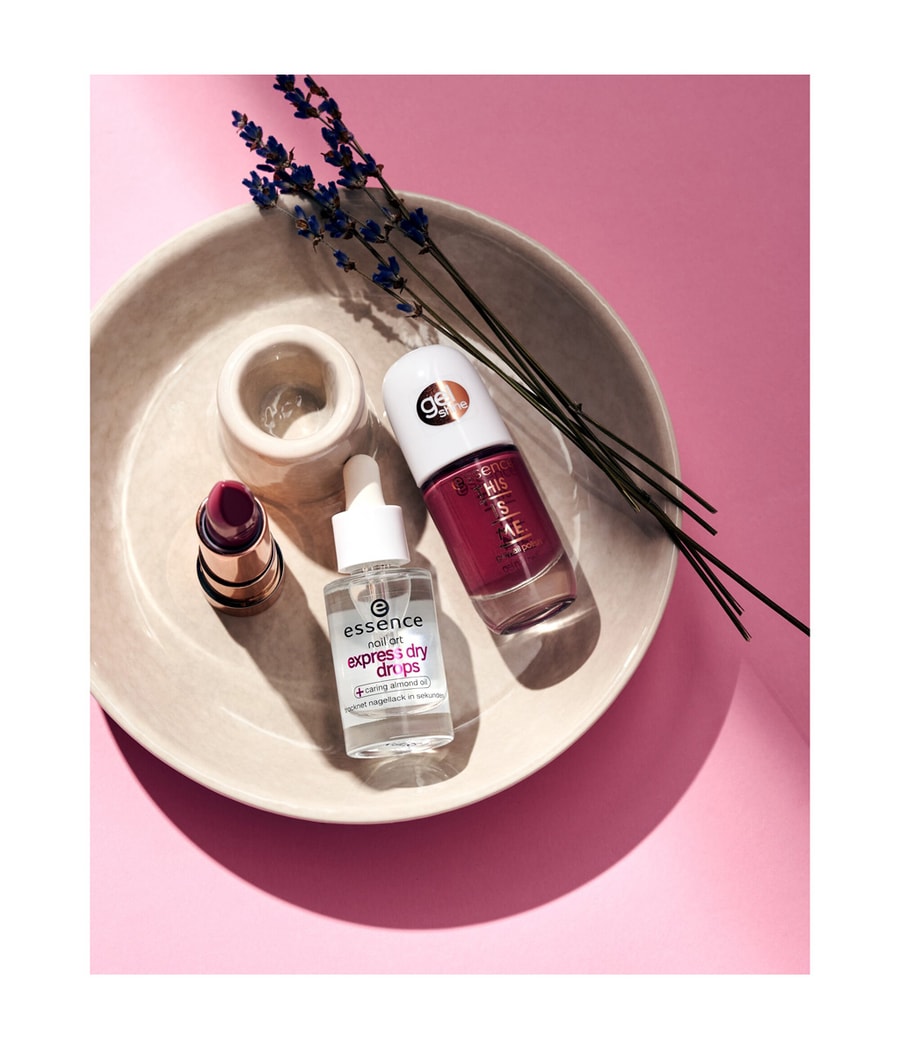 а с помощью Express dry drops лак для ногтей высохнет всего за 60 секунд! благодаря пипетке продукт можно наносить по каплям специально. самое приятное то, что ногти и кутикула питаются витамином е и миндальным маслом, придавая им дополнительный блеск!