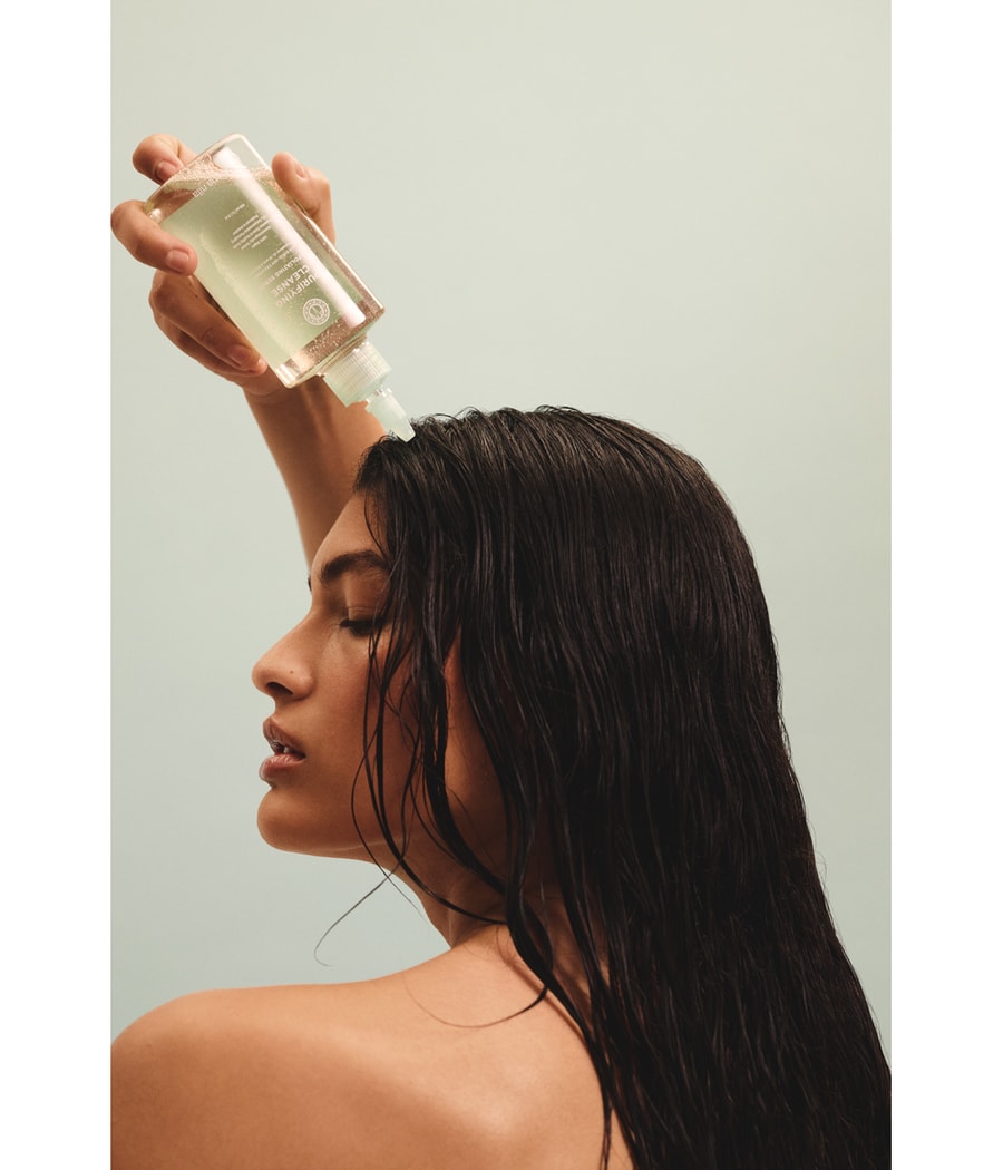 Отшелушивающее средство для ухода за кожей головы, содержащее алоэ вера, провитамин В5 и 5% гликолевую кислоту, которое выводит токсины и очищает кожу головы, сохраняя при этом уровень увлажнения.