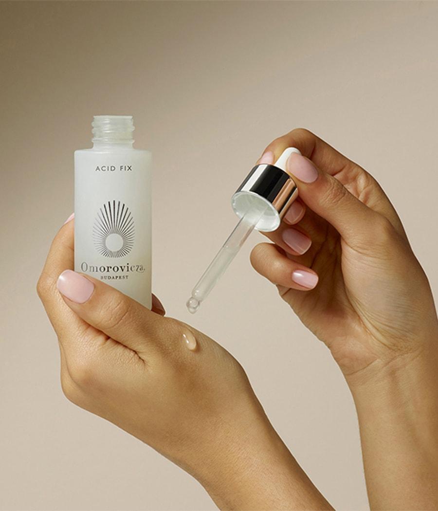 Отшелушите, освежите, осветлите и верните тусклой коже лица упругость с помощью Omorovicza Acid Fix. Благодаря эффективному сочетанию AHA и BHA наш многофункциональный отшелушивающий и кислотный пилинг помогает радикально уменьшить признаки повреждений, вызванных воздействием солнца, городской жизнью, акне и стрессом, открывая более молодой и сияющий вид кожи. Наша главная рекомендация для кожи, склонной к сухости: наносите средство 2–3 раза в неделю после очищения, а затем используйте свой обычный увлажняющий крем для сияющего цвета лица.