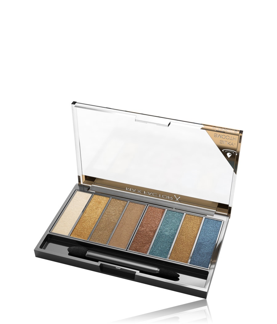 Палитра Masterpiece Nude входит в число фаворитов Max Factor, так как с ее помощью можно создавать бесчисленные образы для макияжа глаз - отныне с более интенсивными и пигментированными цветами. Восемь гармонирующих друг с другом оттенков телесного оттенка создают идеальную обстановку для глаз и впечатляют своей изменчивостью. Палитра предлагает три различных варианта отделки и широкий выбор оттенков – от светлого до мерцающего и темного. Вдохновленная павлиньими перьями, новая палитра Masterpiece Nude в исполнении Peacock Nudes отличается яркими синими, роскошными золотыми и землисто-коричневыми и бронзовыми тонами, создавая захватывающий образ. Благодаря бархатисто-мягкой текстуре интенсивные тени для век легко растушевываются и не оседают в складках век даже в течение дня.