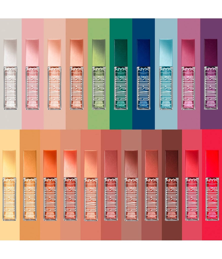 Ultimate Glow Shots: Яркая богатая коллекция профессионального макияжа NYX: жидкие блестящие тени для век розового цвета 19 Strawberry Stacked с насыщенным пигментом и водянисто–кремовой текстурой.