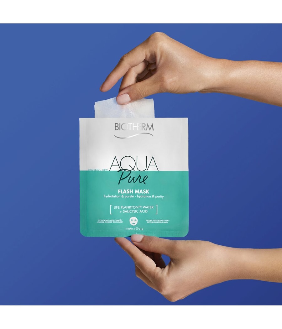 Откройте для себя новые тканевые маски Super от Biotherm прямо сейчас – в сочетании с концентратами Aqua Super Concentrates! Тканевая маска Aqua Pure с салициловой кислотой интенсивно увлажняет кожу в течение 24 часов и устраняет пятна. Излишки кожного сала удаляются, и ваша кожа выглядит заметно матовой. Который мгновенно поможет вашей супер коже!