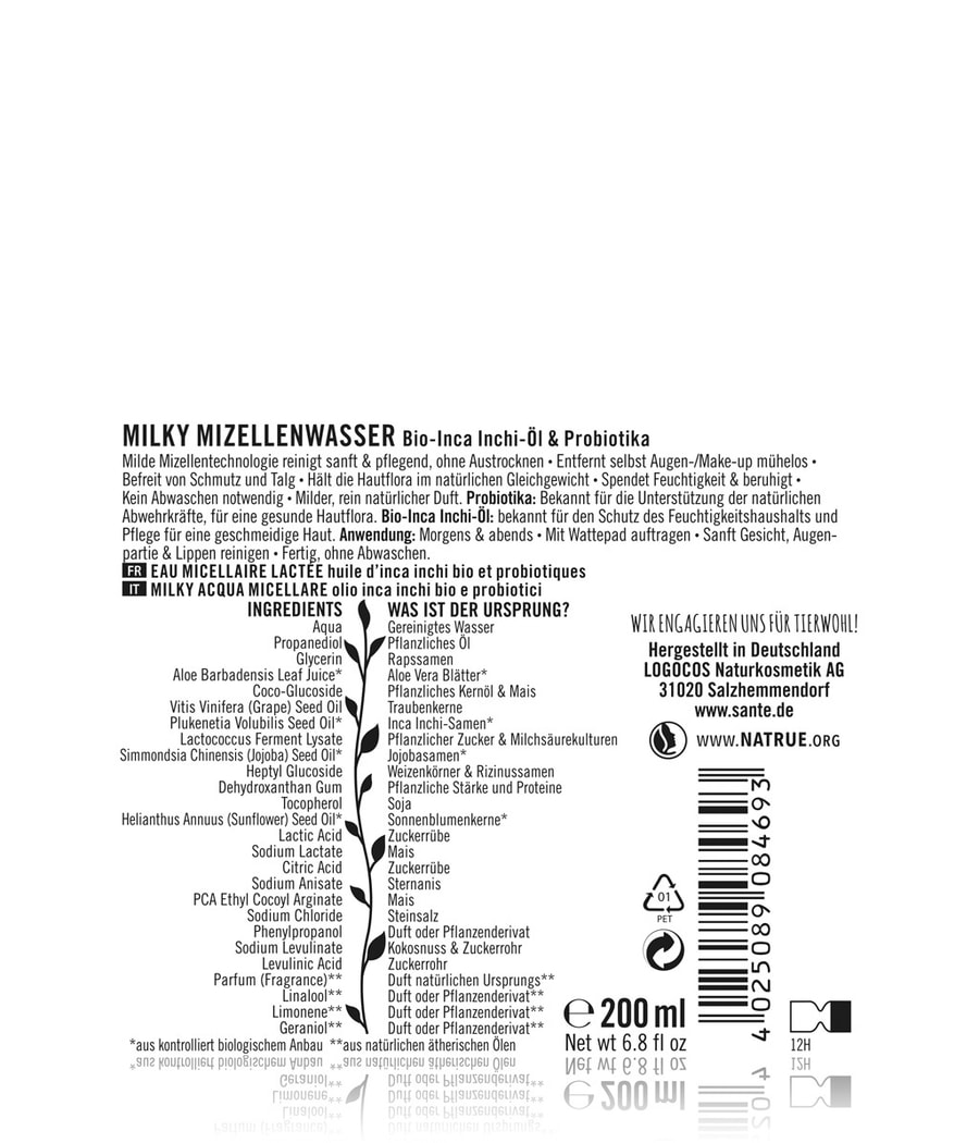 Тоник для лица SANTE Skin Protection Probiotic Toner бережно и бережно очищает кожу с помощью мягкой мицеллярной технологии, не высушивая ее. Мицеллярная вода с мягким, полностью натуральным ароматом легко удаляет даже макияж с глаз, грязь и кожный жир без смывания. Поддерживает естественный баланс флоры кожи, увлажняет и успокаивает. Пробиотики: известны своей способностью поддерживать естественные защитные силы организма и поддерживать здоровую микрофлору кожи. Бутылка изготовлена из 100% переработанного материала.