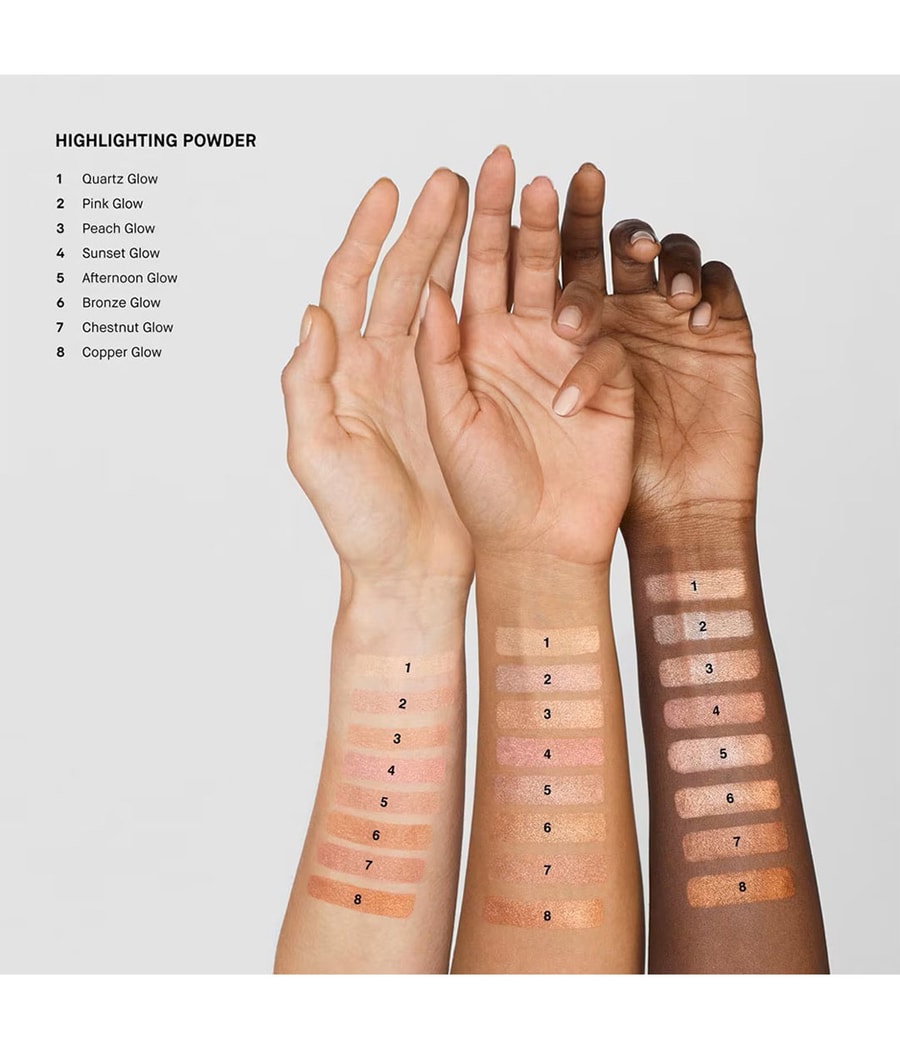 Используйте кисточку для пудры Sheer и нанесите маркер на скулы, область декольте и все остальное, что вы хотите осветлить.