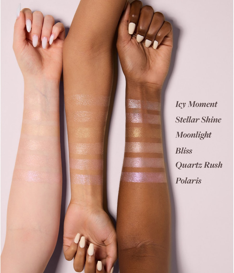 Подсветка Glitz Glow предлагает ослепительный ассортимент блестящих блестящих бусинок. Его чистый блеск придает завораживающее сияние, которое искрится со всех сторон и с легкостью создает глянцевый блеск для макияжа.